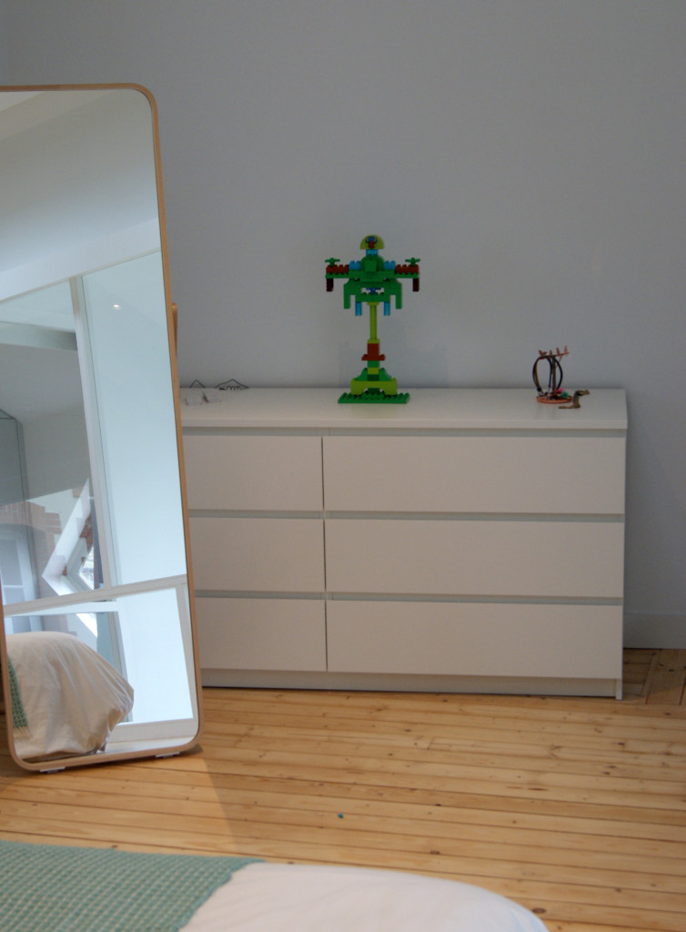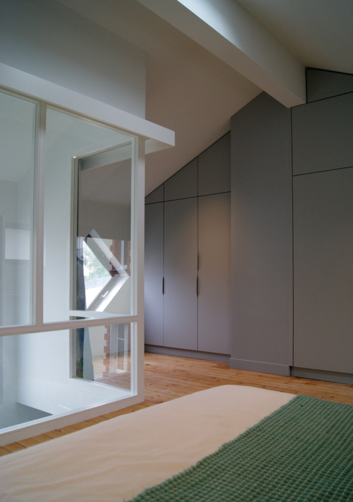 placard intégrée de part et d’autre de la gaine de la cheminée, dans le fond de la chambre