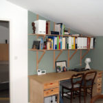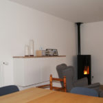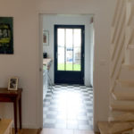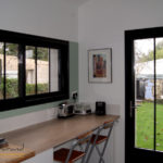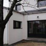 Une famille nantaise souhaitait acquérir un terrain afin d’y construire une maison pour eux 5, ils ont trouvé une vieille bâtisse à démolir pour y construire à la place, une maison neuve, avec 5 chambres, un bureau, deux salles de bain, une cuisine et un salon. Un garage pour deux voitures les isolent de la rue. Les pièces de vie s’ouvrent sur le jardin et les murets en pierre conservés. la patine bleue reste visible !
