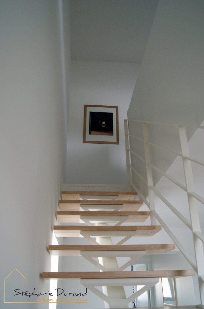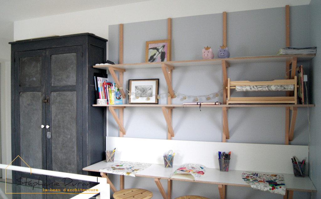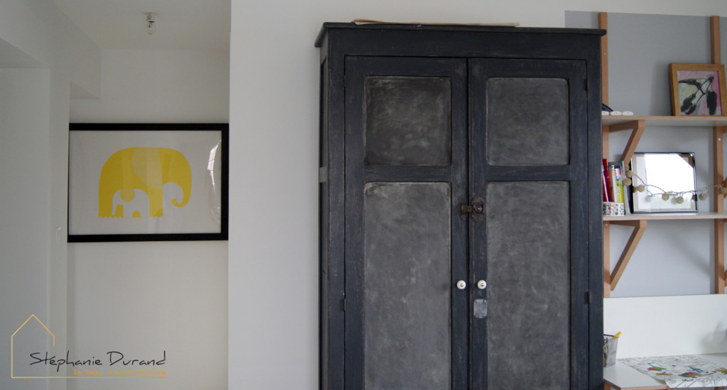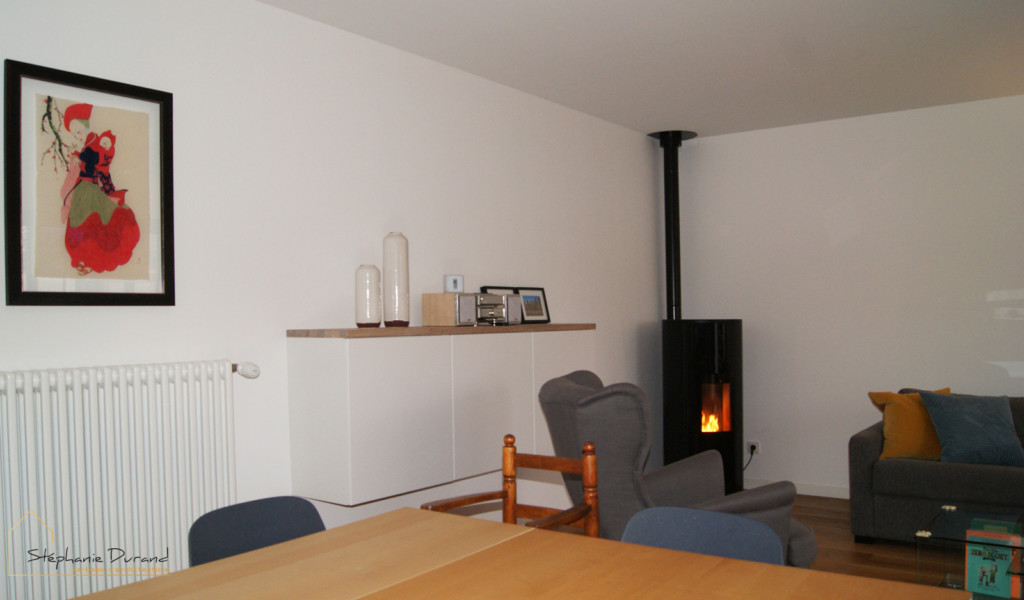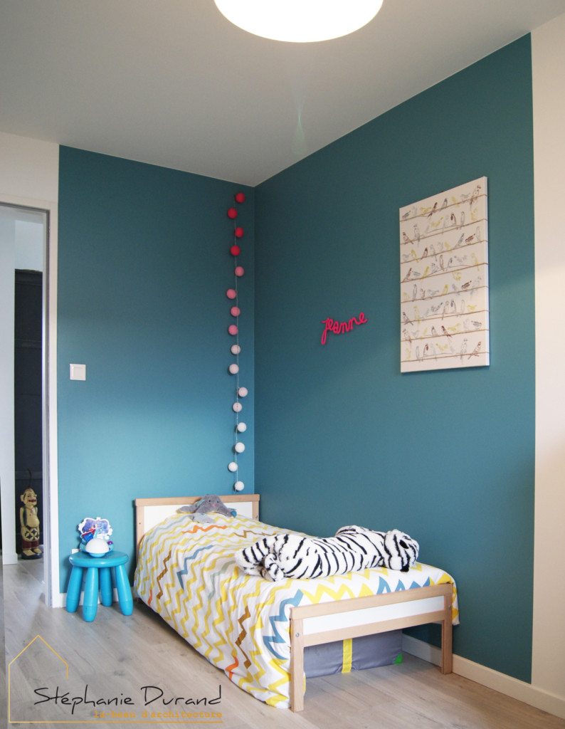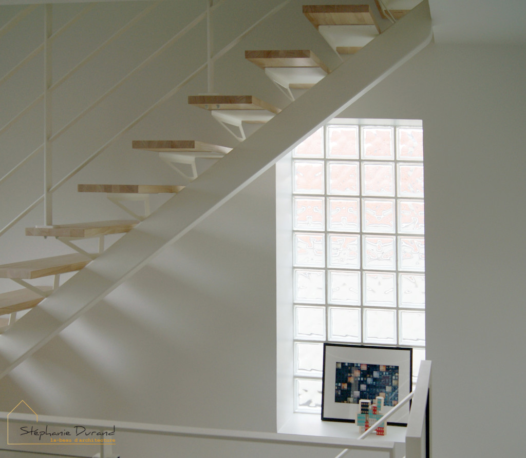 Une famille nantaise souhaitait acquérir un terrain afin d’y construire une maison pour eux 5, ils ont trouvé une vieille bâtisse à démolir pour y construire à la place, une maison neuve, avec 5 chambres, un bureau, deux salles de bain, une cuisine et un salon. Un garage pour deux voitures les isolent de la rue. Les pièces de vie s’ouvrent sur le jardin et les murets en pierre conservés. la patine bleue reste visible !
