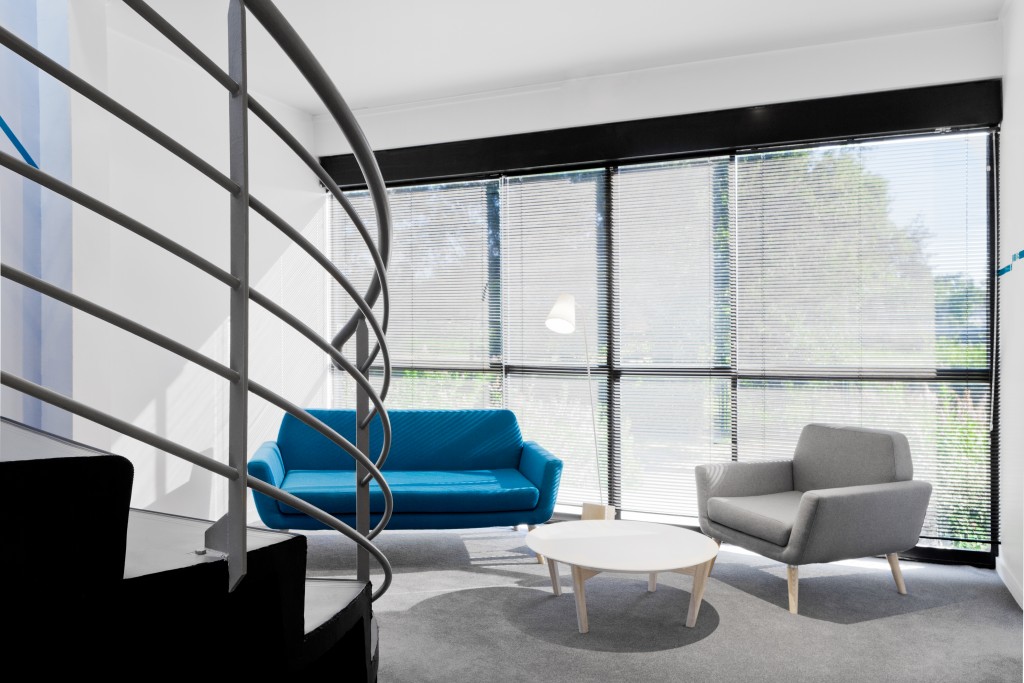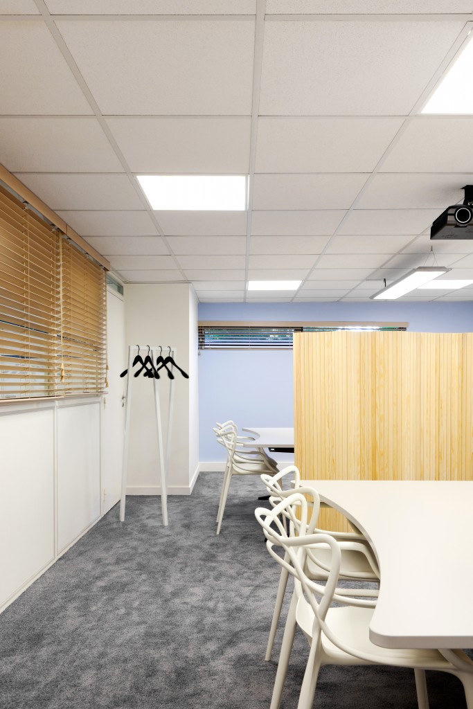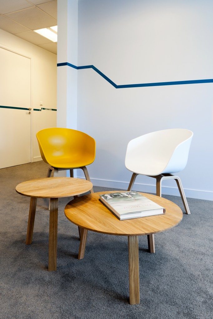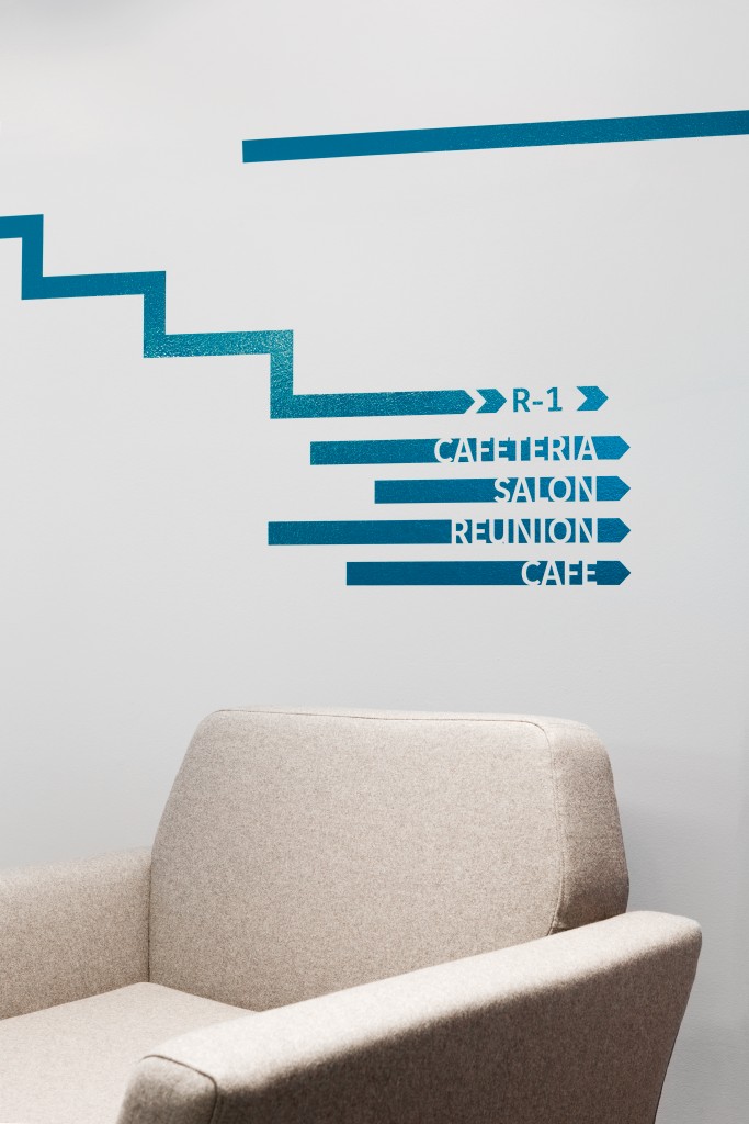 D’un espace à l’origine majoritairement blanc, gris et sombre, la-beau propose une solution d’architecture d’intérieur où le maître mot est la convivialité. Le confort et l’unité du lieu sont symbolisés par un nouveau mobilier, en accord avec les futures couleurs des murs. Une signalétique se déroule sur l’intégralité des espaces communs et explose dans les espaces de circulation afin de souligner la nouvelle identité du lieu.