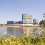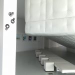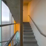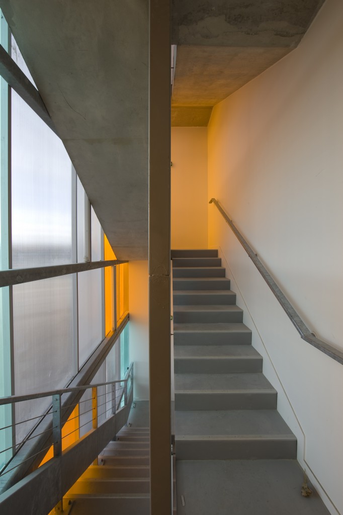 La partie Est de l’immeuble accueille sur ses trois derniers niveaux, 20 logements pour les chercheurs de l’IEA et leurs familles, et 80 petits logements (type T1) de la résidence tourisme répartis sur 13 niveaux.